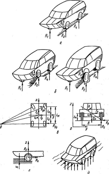 lЗ, lП – расстояние соответственно от задней и передней осей до центра масс. Для случая на рис. 1.2.1, г