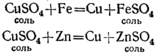 Если в раствор сернокислой меди опустить чистую железную проволоку или кусочек цинка, то на их поверхности выделяется медь, а в растворе образуется сернокислое железо (если было опущено железо) или сернокислый цинк (если был опущен цинк):