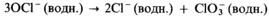 3) при нагревании приблизительно до 75 °С он диспропорционирует на хлорид-ионы и хлорат (V)-ионы:
