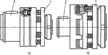 Эта муфта состоит из двух полумуфт, одна из которых имеет форму звездочки с вырезами для роликов. Для быст-рого включения муфты ролики отжимаются пружинами. При передаче вращающего момента ролики заклиниваются между полумуфтами в сужающейся части выреза, образуя жесткое сцепление. Если по какой-либо причине угловая скорость ведомого вала превысит угловую скорость ведущего, то вследствие обгона ролики расклинятся, выкатятся в расширенную часть выреза и муфта автоматически выключится. При остановке ведущего звена ведомый вал продол-жает вращаться.