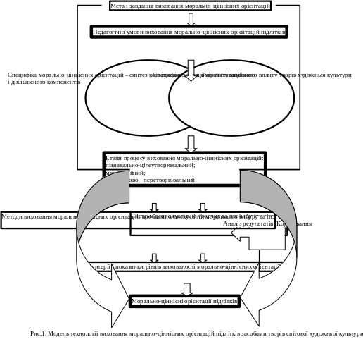 4. З урахуванням необхідності морально-ціннісного виховання підлітків та основних педагогічних умов ефективності такого впливу розроблено особистісно орієнтовану технологію виховання морально-ціннісних орієнтацій підлітків як обґрунтовану в логічній послідовності виховну систему, яка реалізується в процесі спілкування учнів з творами світової художньої культури на уроках суспільствознавчого і гуманітарно-естетичного циклів та в позакласній діяльності.
