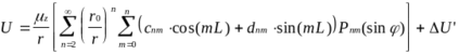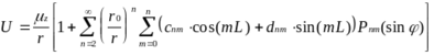 Uв = (mz/r)(r0/r)2[c20P20(sinj) + (c22cos(2L) + d22sin(2L))P22(sinj)],