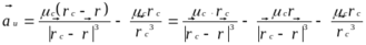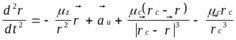 Здесь первое слагаемое есть ускорение, которое получил бы КА, если он был непритягивающим, а Земля отсутствовала.