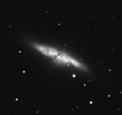 Величественные картины, раскрывающиеся в созвездии Большой Медведицы, заставляют задумываться о путях эволюции звездных миров, о тайнах рождения галактик. Вот, скажем, уже знакомая нам пара галактик: М81 и М82. Судя по их спектрам, одна из них удаляется от нас со скоростью 187, а другая — со скоростью 74 км/с. Значит, одна из них удаляется от другой со скоростью, не меньшей 113 км/с. Отсюда естественно сделать вывод, что эти галактики родились совместно и при рождении получили начальные скорости, заставляющие систему непрерывно расширяться.