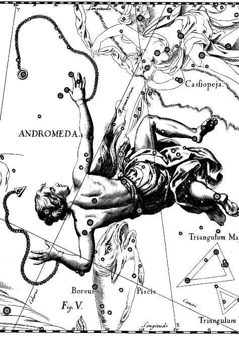 В греческих мифах Андромеда - дочь эфиопского царя Цефея и царицы Кассиопеи. Морское чудовище, посланное Посейдоном, должно было съесть Андромеду, но Персей спас ее.
