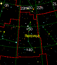 Выше всех расположен Денеб - ярчайшая звезда в созвездии Лебедя, которое по форме напоминает крест, вытянутый вдоль серебристой полосы Млечного Пути. Название ярчайшей звезды Денеб - сокращенное от арабского дгенеб эд-дажа жех (хвост курицы). Звезда Альбирео ( Лебедя) расположена в голове Лебедя (или в основании креста). Эта звезда третьей величины в небольшой телескоп представляется одной из красивейших двойных звезд (желтая 3m и голубая 5,3m).