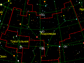 Примечательный объект в этом созвездии - галактика М31 (Туманность Андромеды) и два ее спутника - галактики М32 и NGC 205. В безлунную ночь Туманность Андромеды видна невооруженным глазом примерно в градусе к западу от звезды Андромеды. Это галактика диаметром около 120 тыс. световых лет, очень похожая на нашу и состоящая примерно из 100 млрд звезд. Расстояние до нее и двух ее спутников 2,25 млн. световых лет.