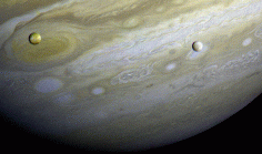Юпитер - четвертый по яркости объект нашего неба (после Солнца, Луны и Венеры, но иногда Марс бывает более ярким). Он был известен с доисторических времен. Открытие Галилео в 1610 году четырех больших спутников Юпитера Ио, Европы, Ганимеда и Каллисто было первым открытием, показавшим, что может существовать иной центр движения, и не все тела движутся вокруг Земли. Это было главным доказательством в пользу гелиоцентрической теории Коперника о движении планет. Галилео вынуждали отречься от своих убеждений, и он был заключен в тюрьму до конца его жизни.