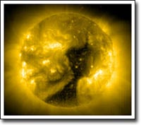разреженной изотермической короны, в которой все атомы ионизованы вплоть до самых глубоких электронных оболочек. Солнечная корона постепенно переходит в динамическое образование постоянно расширяющегося потока ионизованных атомов (в основном протонов, альфа-частиц и свободных электронов), образующих солнечный ветер, простирающийся за орбиты Земли и Марса.