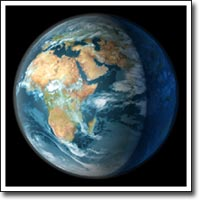 ретья от Солнца планета Солнечной системы, удаленная от него на среднее расстояние 1 а.е., с периодом обращения в 1 год. Масса 5.98*1024 кг, полярный радиус 6356.9 км, экваториальный 6378.17 км, (сжатие около 1/300); средняя плотность 5.5 г/см3; период осевого вращения относительно звезд 23 часа 56 минуты 04.1 секунды; Земля отличается от всех других планет Солнечной системы наличием гидросферы и биосферы, а такие большой динамической активностью коры и атмосферы. Структура твердой части: кора – самая внешняя и тонкая (10-100 км) твердая оболочка с п