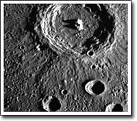 лижайшая к Солнцу планета, по размерам похожая на Луну (радиус 2439 км), а по средней плотности (5.42 г/см3) на Землю. Ускорение свободного падения на поверхности 372 см/с2, в 2.6 раза меньше земного. Период обращения вокруг Солнца составляет около 88 земных суток. Максимальный видимый угловой размер около 7″. Вращение прямое с периодом 58.6±0.5 суток. Это близко к 2/3 периода обращения планеты вокруг Солнца. Ось вращения почти перпендикулярна к плоскости эклиптики. Cоизмеримость периодов вращения и обращения объясняется приливными явлениями. Поверхность очень напоминает лунную: множество кратеров самых различных размеров. Имеются также очень высокие (в несколько километров) уступы длиною в тысячи километров. Температура поверхности в полдень на экваторе достигает 700 К, а на ночной стороне падает до 100 К. Поверхностный слой грунта – мелко раздробленная порода с низкой плотностью. Атмосфера Меркурия имеет чрезвычайно малую плотность: концентрация не более 106см–3 у поверхности (как в земной атмосфере на высоте 700 км). Состав атмосферы известен плохо, возможен гелий (концентрация около 104см–3) и натрий (около 105см–3). Меркурий имеет собственное магнитное поле в 300 раз слабее земного (около 0.002 Э), что говорит о возможном существовании жидкого ядра. Спутников нет.