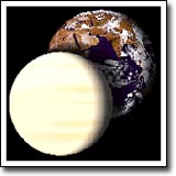 торая планета Солнечной системы, удаленная от Солнца, на среднее расстояние 0,723 а.е. (108 млн. км); радиус твердой поверхности 6052 км (0,95 земного), самая яркая на земном небе утренняя или вечерняя "звезда". Видимый угловой диаметр меняется от 20″ до 1′. Во время наилучшей видимости видимая звездная величина достигает -4m. Масса 4,87*1024 кг (0,82 масс Земли), средняя плотность 5250 кг/м3, вращение с периодом 243 сут обратное и синхронное относительно Земли (в нижнем соединении всегда обращена к Земле одной и той же стороной). Сидерический период обращения 224,7 суток и з