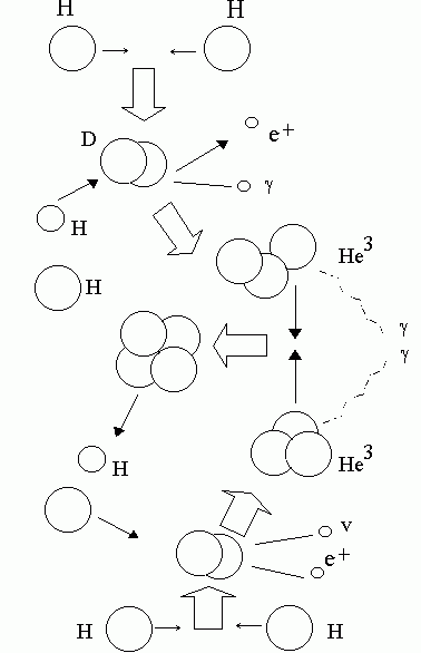 Эта энергия выделяется в результате слияния атомов лёгких химических элементов в атомы более тяжёлых. В недрах Солнца из четырёх атомов водорода образуется один атом гелия. Именно эту страшную энергию люди научились освобождать при взрыве водородной бомбы. Есть надежда, что в недалёком будущем человек сможет научиться использовать её и в мирных целях.