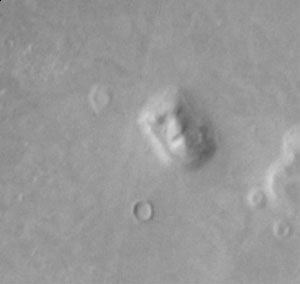 25 июля 1976 года американская межпланетная станция "Викинг-1" сфотографировала на поверхности Марса удивительное образование длиной 1,5 километра, напоминающее женское лицо. Это была сенсация - снимок обошел все периодические издания мира и неоднократно появлялся на телевизионных экранах. Конечно, правоверные астрономы объявили изображение "случайной игрой природы". Правда, "лицо было сориентировано по меридиану Марса, но и это признали "случайным". Словом, нужна была экспертиза удивительного снимка, и она не заставила себя долго ждать. Специалист компании "Аналитик Сайенсиз" в Бостоне (США) Марк Карлотто построил по компьютерной методике трехмерное изображение упомянутой структуры и - действительно увидел в нем "голову"! Затем, усилив контрастность правой, затененной ее стороны, обнаружил второй "глаз" примерно на сто метров ниже "носа" и даже нечто напоминающее "зубы"! В своей статье в научном журнале "Прикладная оптика" Карлотто писал: "Полученные результаты наводят на мысль, что все это НЕ может иметь естественного происхождения". Мало того, специалист по космосу Винсент ди Пиетро и кибернетик Грегори Моленаар обнаружили в архиве марсианских снимков ВТОРОЕ изображение того же "лица"! Этот снимок был сделан через 35 суток после первого при ином освещении. Компьютерная обработка не только подтвердила детали первой фотографии, но и выявила дополнительные подробности. Теперь на ней были видны "глазные яблоки" со "зрачками", опять же "зубы" и на освещенной солнцем "щеке"... каменную "слезу"! Ди Пиетро и Моленаар заключили: "Если поразительные детали этой каменной "головы" возникли естественным образом, то природа должна быть высокоразвитым существом!"