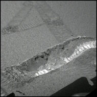 Для выяснения состава грунта под поверхностью марсоход Opportunity успешно прокопал в ней ямку одним из своих колес (см. ниже). Марсоход попеременно пробуксовывал правым передним колесом вперед и назад, в то время как остальные колеса удерживали его на месте. Затем он несколько раз повернулся вокруг, чтобы расширить проделанное углубление. Этот процесс занял 22 минуты. Полученная канавка длиной 50 сантиметров и глубиной 10 сантиметров оказалась даже больше, чем планировали инженеры NASA. Ученых привлекли две особенности полученной ямки: комкообразная структура ее верхних стенок и яркость почвы на дне. Теперь ученые с нетерпение ждут результатов исследований всех научных приборов марсохода. Исследование ямки, проделанной марсоходом Opportunity в марсианской почве, выявило ее новые неожиданные черты, такие как яркие круглые камешки, а также тот факт, что почва в ямке настолько мелкозерниста, что микроскоп марсохода не в состоянии разделить ее на отдельные частицы. Грунт под поверхностью марса не похож на поверхностный песок. Дальнейшие спектральные исследования помогут выяснить причину такого различия.