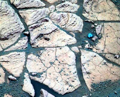бразионный инструмент марсохода Spirit пробурил первое отверстие в марсианском камне (первое сделанное человеком на другой планете!) На снимке, переданном панорамной камерой марсохода видно круглое отверстие глубиной 2,65 миллиметров, которое при дальнейшем исследовании внутренней структуры показало, что это вулканический базальт. Ученые NASA, вдохновленные удачным экспериментом, планируют повторить его с марсоходом Opportunity.