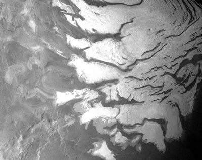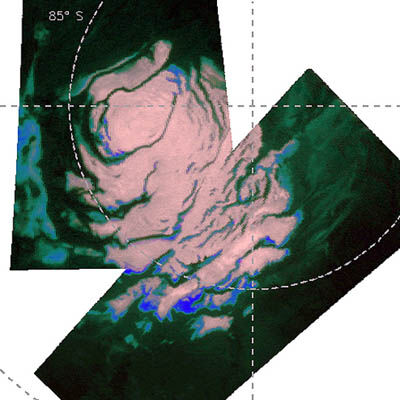 Mars Express использовал прибор OMEGA для измерения количества света и тепла, отраженных от полярной шапки. Наблюдения показали, что южную полярную шапку окружают сотни квадратных километров вечной мерзлоты. Вечная мерзлота это водяной лед, смешанный с марсианской почвой и замороженный до каменной твердости низкими температурами Марса. Именно поэтому водяной лед не могли обнаружить раньше - ведь почва почти не отражает света. Однако чувствительный прибор OMEGA смог изучить инфракрасный спектр поверхности, обнаружив признаки водяного льда. Новые данные говорят о том, что на Марсе возможно гораздо больше воды, чем мы предполагали ранее. Южная полярная шапка может быть разделена на три отдельных части. Первая часть это сама яркая шапка, смесь из 85% льда диоксида углерода и 10% водяного льда. Вторая часть включает крутые склоны известные как "откосы", полностью состоящие из водяного льда, которые отходят от шапки к окружающей местности. Третья часть включает обширные поля вечной мерзлоты, протянувшиеся на десятки километров от откосов. Наблюдения прибора OMEGA производились в период с 18 января по 11 февраля 2004 года, когда в южном полушарии Марса стояло позднее лето, и температура поверхности была максимальной. Однако, даже, несмотря на этот факт, температура не поднималась выше -130 градусов Цельсия. Это говорит о том, что лед в этом регионе никогда не тает.