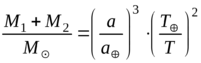 , можно по формуле (1.3) вычислить, во сколько раз сумма масс компонентов двойной звезды больше массы Солнца.