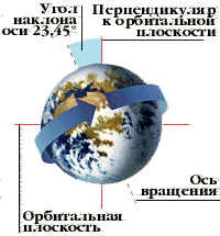 Земля, третья планета от Солнца, является крупнейшей из 4-х внутренних планет, имеющих схожую с земной внутреннюю структуру. В процессе движения нашей планеты по орбите вокруг Солнца плоскость земного экватора (наклоненная к плоскости орбиты на угол 23o45') перемещается параллельно самой себе таким образом, что в одних участках орбиты земной шар наклонен к Солнцу своим северным полушарием, а в других- южным, именно это и является причиной смены времён года. Кроме того расстояние от Земли до Солнца в различных точках орбиты неодинаковые, в перигелии (3 января) оно приблизительно на 2.5 млн. км. меньше, а в афелии (3 июля)- на столько же больше среднего расстояния, составляющего 149, 6 млн. км.