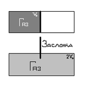 Рис. 2. Пример, иллюстрирующий справедливость соотношения ∆І=–∆S – необратимое расширение газа в пустоту.