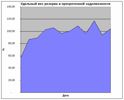 Удельный вес резерва в просроченной задолженности