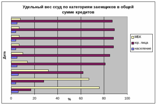 Удельный вес ссуд по категориям заемщиков в общей сумме кредитов
