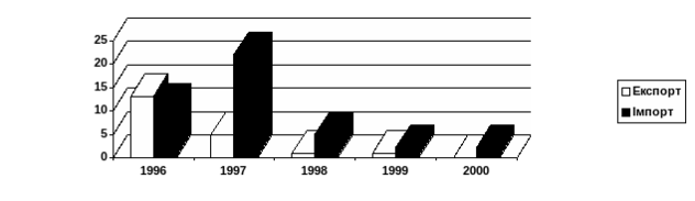 Мал. 2.7. Динаміка експортно-імпортних операцій по документарному інкасо в 1996 – 2000 р.