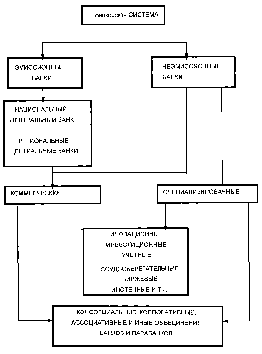 Банковская система России представляет собой двухуровневую систему, состоящую из Центрального Банка Российской Федерации, коммерческих банков, включая их филиалы, а также других кредитных учреждений. Коммерческие банки начали развиваться с августа 1988г., когда был зарегистрирован первый такой банк. Особенно бурно коммерческие банки создавались во второй половине 1991г. Именно в этот период, скорее в интересах политических, а не экономических, «сверху» осуществлялась коммерциализация учреждений государственных специализированных банков. В результате были разрушены крупные банки с вертикальной структурой управления, разветвленной сетью отделений и на их месте возникли зачастую мелкие и потенциально неустойчивые коммерческие банки. В то же время шел процесс создания новых коммерческих банков, целый ряд которых занял лидирующие позиции на рынке банковских и финансовых услуг.