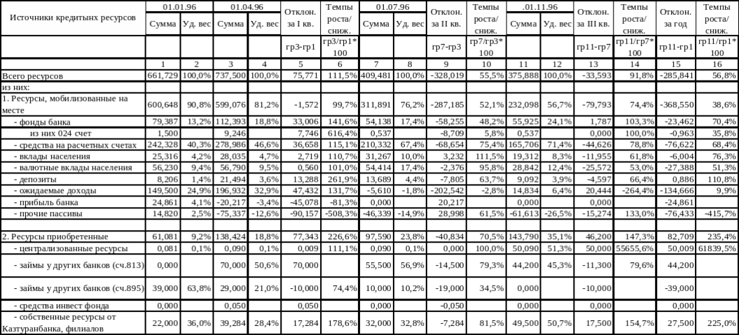 | 01.08.96 | 43190,4 | 34080,3 | -9110,1 |
