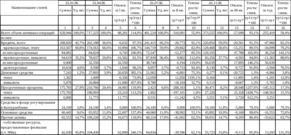 | Счета | 01.01.96 | 01.04.96 | 01.07.96 | 01.10.96 | 01.11.96 | 01.12.96 |