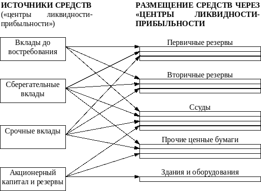 7 С целью упрощения анализа, учитывая равенство объемов ресурсов и кредитных вложений сроком до одного гола, здесь был использован показатель Т-1. В практической деятельности банка его необходимо исчислять с учетом фактической временной динамики данной категории ресурсов и кредитных вложений. Временной период использования ресурсов и погашения ссуд сроком свыше 5 лет, а также бессрочных пассивов оценен в 10 лет.