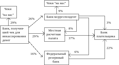 Чековое обращение с необходимостью порождает взаимные претензии банков друг к другу. Например, клиент банка А заплатил чеком в 100 долл. клиенту банка Б, находящегося в том же городе. Тот сдал чек в банк Б на инкассо. Одновременно другой клиент банка Б выписал чек на 90 долл. В пользу клиента банка А, и последний сдал его в свой банк для взыскания. Возникают взаимные требования: А должен Б 100 долл., а Б должен А 90 долл. Естественно, что сумму в 90 долл. можно зачесть и ограничиться уплатой остатка в 10 долл. На практике этот зачет сопряжен с большими техническими сложностями, так как требования друг к другу в крупном финансовом центре имеют десяток и более банков. В этой ситуации без специальных расчетных организаций не обойтись. С этой целью создаются клиринговые, или расчетные палаты (clearing house), которые выполняют взаимные зачеты требований банков друг к другу.