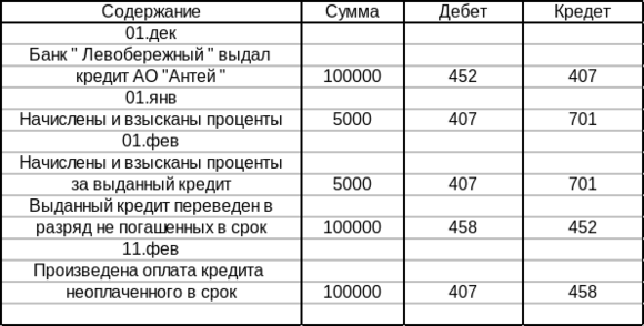 декабря банк « Левобережный» выдал кредит АО «Антей» на 2 месяца