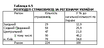 Страхові компанії можна класифікувати за географічною ознакою. Подана далі табл. 4.5 характеризує розміщення страховиків за регіонами України