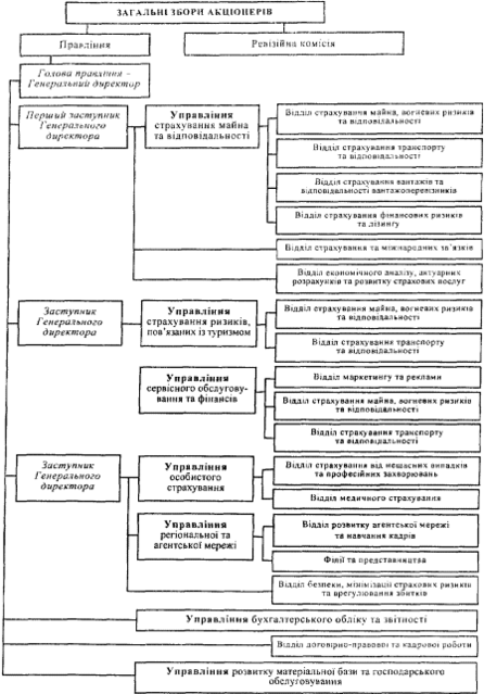 Під структурою компанії розуміються насамперед зв'язки, що існують між різними частинами організації для досягнення її мети. Це поділ роботи на окремі завдання, що виконуються керівництвом, галузевими та функціональними управліннями (департаментами), відділами, секторами й іншими підрозділами центрального офісу та регіональної мережі компанії.