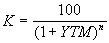 Поскольку единственным источником дохода является разница между ценой покупки и номиналом (ценой погашения), проведение операций с бескупонными облигациями порождают элементарный поток платежей. В данном случае подобный поток характеризуется следующими параметрами: ценой покупки P (современная стоимость облигации), номиналом N (будущая стоимость), процентной ставкой r (норма доходности) и сроком погашения облигации n. Любой параметр операции с элементарным потоком платежей может быть найден по известным значениях трех остальных. Однако поскольку номинал облигации всегда известен (или может быть принят за 100%), для определения доходности операции достаточно знать две величины – цену покупки P (либо курс К) и срок погашения n.