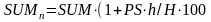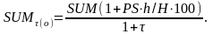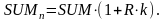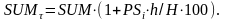 При відсутності інфляції кінцева сукупна сума вкладу (SUMп) за період h складалася б із суми основного внеску (SUM) і нарахованих на неї відсотків по річній ставці PS: