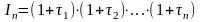 Аналогічно вищевикладеному визначаємо ставку складних відсотків, що враховує інфляцію за n періодів при заданому індексі інфляції.