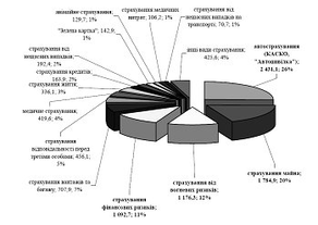 У структурі валових страхових виплат медичне страхування займає більш вагому частину (13%), що зображено на рис.5.