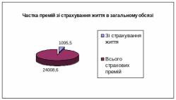 Рисунок 4 – Частка премій зі страхування життя в загальному обсязі страхових премій у 2008 році