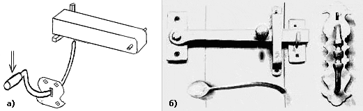 Рис.8. Замок-засов: а) Г-образный ключ; б) современный замок