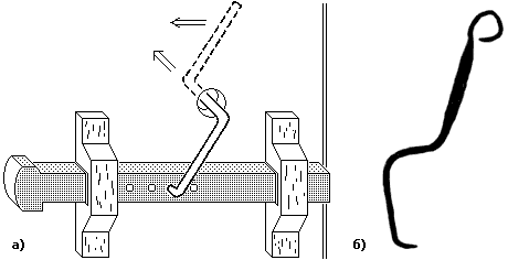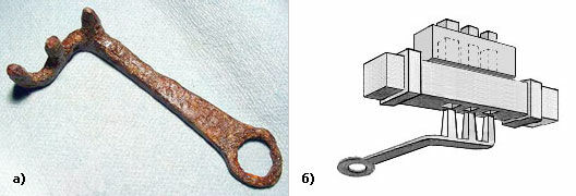 Рис.5. Лаконский замок: а) ключ; б) принцип действия замка
