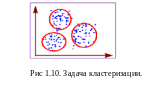 Кластеризация - это разбиение набора примеров на несколько компактных областей (кластеров), причем число кластеров заранее неизвестно (рис. 1.10). Кластеризация позволяет представить неоднородные данные в более наглядном виде и использовать далее для исследования каждого кластера различные методы. Например, таким образом можно быстро выявить фальсифицированные страховые случаи или недобросовестные предприятия.