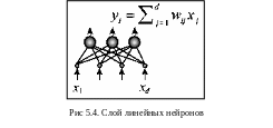 Скрытый слой такой сети осуществляет оптимальное кодирование входных данных, и содержит максимально возможное при данных ограничениях количество информации. После обучения внешний интерфейс (wij) (рис.5.4) может быть сохранен и использован для понижения размерности.