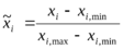 Приведение к единому масштабу обеспечивается нормировкой каждой переменной на диапазон разброса ее значений. В простейшем варианте это – линейное преобразование:
