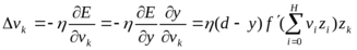 В частности, в настоящих исследованиях изменения весов проводилось после проверки всей обучающей выборки, при этом функция ошибки рассчитывалась в виде :
