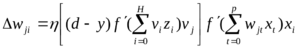 Коррекция весов между входным и скрытым слоями производится по формуле: