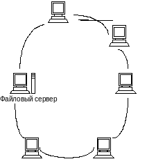с робочою станцією 4 і т.д. Остання робоча станція пов'язана з першою. Комунікаційний зв'язок замикається в кільце.