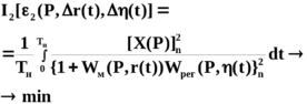 В качестве минимизированного функционала целесообразно выбрать интегральный среднеквадратический критерий качества вида: