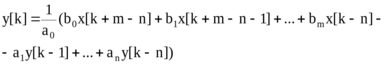 Этой передаточной функции соответствует уравнение в конечных разностях: